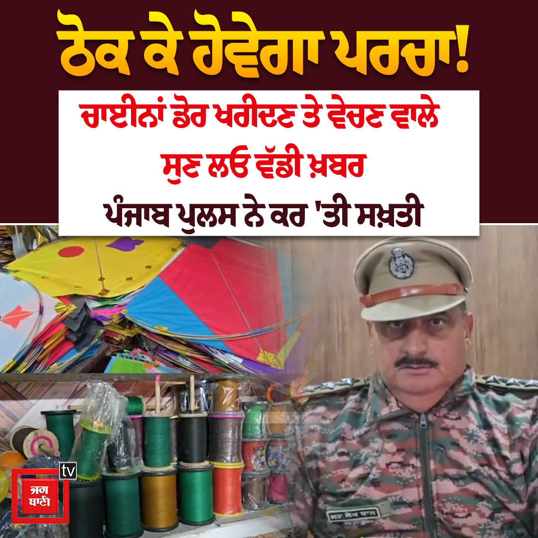 ਠੋਕ ਕੇ ਹੋਵੇਗਾ ਪਰਚਾ! ਚਾਈਨਾਂ ਡੋਰ ਖਰੀਦਣ ਤੇ ਵੇਚਣ ਵਾਲੇ ਸੁਣ ਲਓ ਵੱਡੀ ਖ਼ਬਰ, ਪੰਜਾਬ ਪੁਲਸ ਨੇ ਕਰ ''ਤੀ ਸਖ਼ਤੀ
