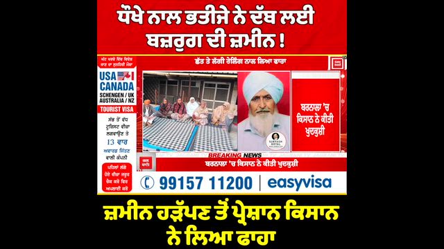 ਧੌਖੇ ਨਾਲ ਭਤੀਜੇ ਨੇ ਦੱਬ ਲਈ ਬਜ਼ਰੁਗ ਦੀ ਜ਼ਮੀਨ ! ਜ਼ਮੀਨ ਹੜੱਪਣ ਤੋਂ ਪ੍ਰੇਸ਼ਾਨ ਕਿਸਾਨ ਨੇ ਲਿਆ ਫਾਹਾ, ਨਹੀਂ ਦੇਖ ਹੁੰਦਾ ਪਰਿਵਾਰ ਦਾ ਹਾਲ