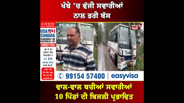 ਦ.ਰਦਨਾਕ ਹਾ.ਦਸਾ: ਸਵਾਰੀਆਂ ਨਾਲ ਭਰੀ ਬੱਸ ਬੇਕਾਬੂ ਹੋਕੇ ਖੰਬੇ ''ਚ ਵੱਜੀ, ਸਵਾਰੀਆਂ ਦਾ ਹੋਇਆ ਬਚਾਅ
