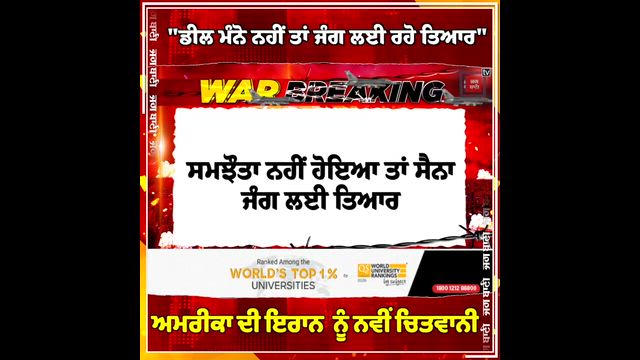 "ਸਮਝੌਤਾ ਨਹੀਂ ਹੋਇਆ ਤਾਂ ਸੈਨਾ ਜੰਗ ਲਈ ਤਿਆਰ" America ਦੀ Iran ਨੂੰ ਨਵੀਂ ਚਿਤਾਵਨੀ
