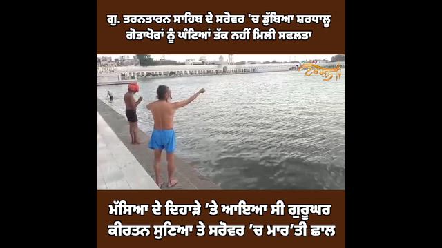 ਗੁਰਦੁਆਰਾ ਸ੍ਰੀ ਦਰਬਾਰ ਸਾਹਿਬ ਤਰਨਤਾਰਨ ’ਚ ਮੰਦਭਾਗੀ ਘਟਨਾ, Kirtan ਸੁਣਨ ਮਗਰੋਂ ਸ਼ਰਧਾਲੂ ਨੇ ਸਰੋਵਰ ’ਚ ਮਾਰੀ ਛਾਲ